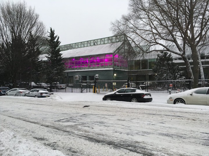 Sustainable lights are emitting a purplish glow from Brooklyn Botanic Garden's greenhouses this winter.