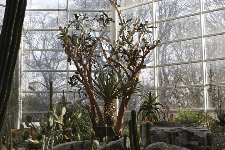 The Desert Pavilion is filled with interesting plants year-round. "In winter, aloes, euphorbias, and many other plants native the southern hemisphere begin to flower. Then, as our spring approaches and the days lengthen, many other desert plants begin to grow and bloom," says curator Caitlin Daley.