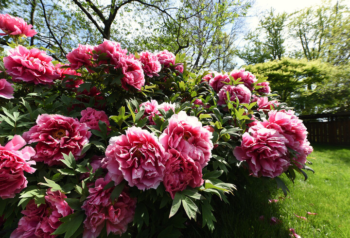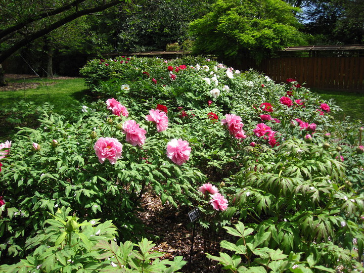 The Tree Peony Collection at Brooklyn Botanic Garden is a rare planting of more than 300 specimens that were presented as a gift from the Japanese city of Yatsuka-Cho in the fall of 2002, as a memorial to the victims of the September 11 terrorist attacks. Consisting of 49 different varieties of Japanese tree peony, the collection highlights six different colors, and each variety was grown by a small family nursery on the island of Daikon-Shima in Shimane Prefecture.
