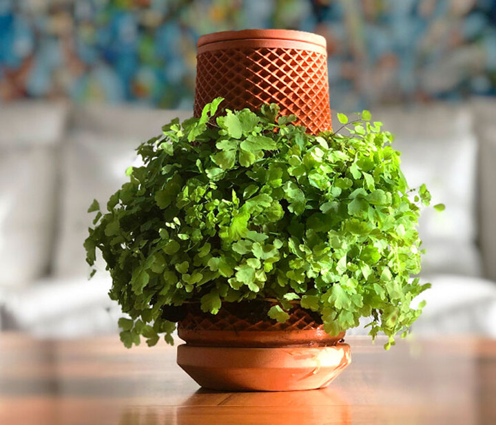 Soon, the seeds will sprout and start forming roots across terraplanter’s surface. The design makes it impossible to overwater whatever you’re growing; the roots will just absorb what they need. All you have to do to keep your plants happy is remember to refill the reservoir when it starts to run low (the creators estimate that it might need refilling every five to 15 days, depending on what you’re growing). Eventually, when your plants have filled in more, you’ll hardly see the planter at all; it’ll almost look like your houseplants are growing out of nowhere.