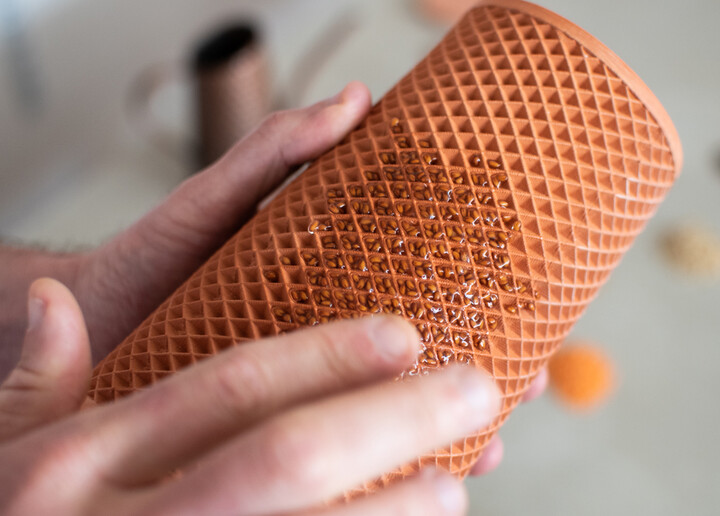 Terraplanter is kind of like an inside-out container; instead of putting plants in it, this pot has a network of tiny grooves around the outside where you place seeds. A reservoir in the middle holds all the water needed. The ceramic planter material is porous enough to let some water seep through without flooding the seeds; there's just the right amount of moisture available at all times.