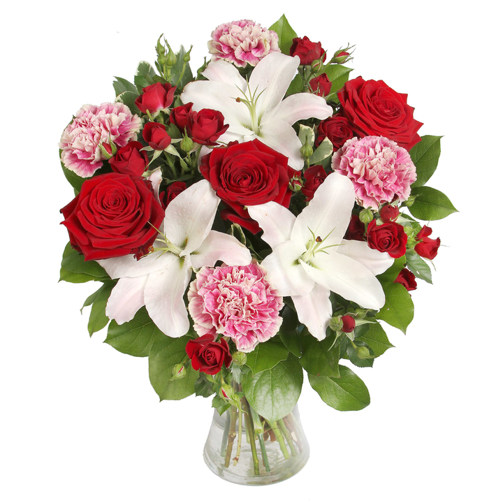 Rich red Roses, pastel pink carnations and aromatic Lilies also convey an irresistible romantic appeal.