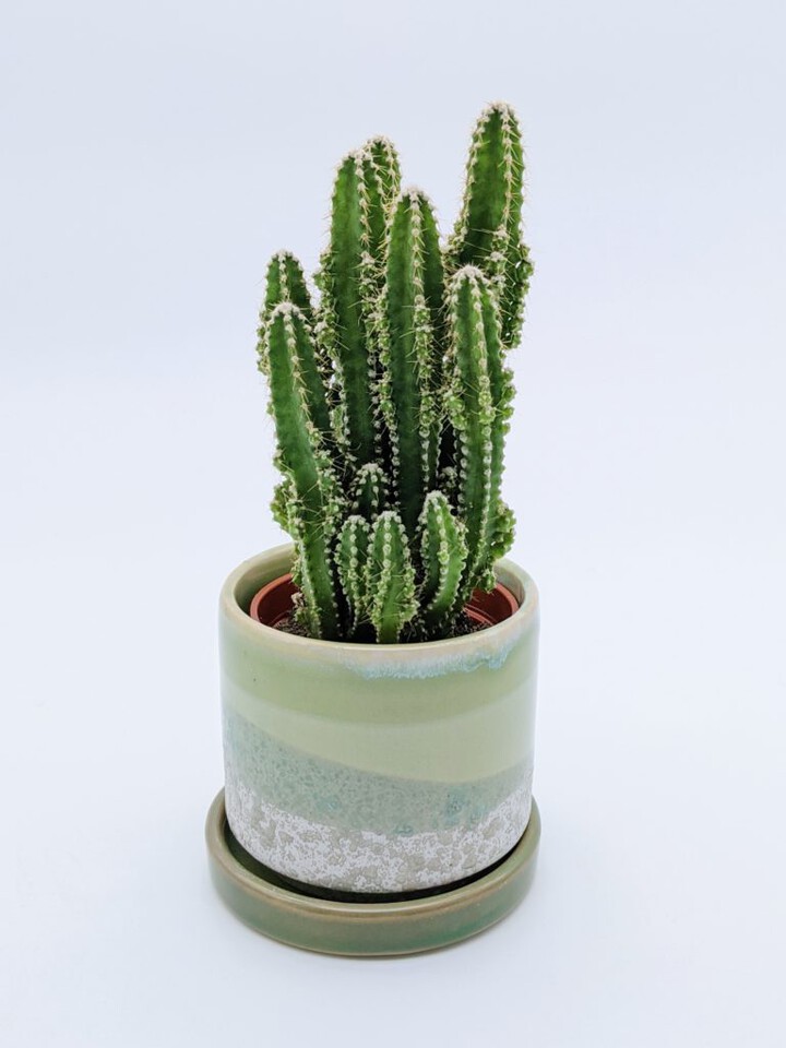 This is a slow growing cactus, so you can expect it to remain fairy-like in size for quite some time. In fact, it can take up to a decade for this cactus to reach its approximate full height of six feet. Typically you’ll see these little guys around 3-4 inches in height at nurseries. It’s great for shelves or window sills that are tight on space and have plenty of bright sunlight as it can handle direct window light (windows filter out a significant amount of UV rays, making direct light from behind a window less intense than true direct light). While it will grow best with bright light, Fairy Castle Cactus and other cacti will survive quite easily even in low light. Fairy Castle Cactus will only flower very rarely, but when it does the flowers are white or yellow.