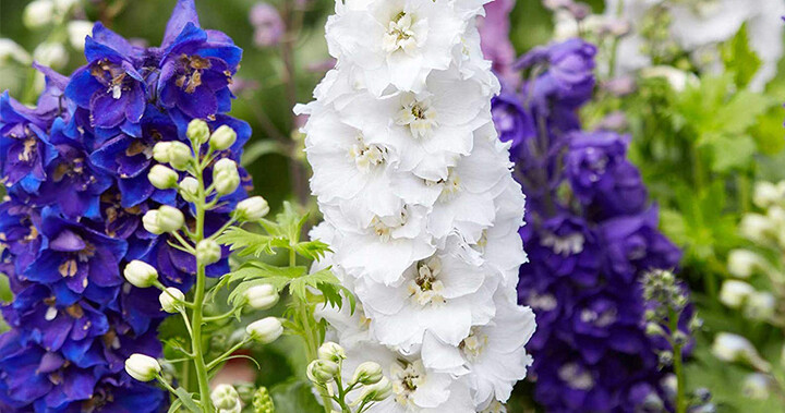 Larkspur es una flor favorita entre los jardineros. Uno de sus sépalos, como pétalos, se alarga en forma de espolón, que se asemeja al espolón de una alondra; de ahí el nombre larkspur. Debido a que el capullo sin abrir se parece un poco a un delfín y porque la palabra latina para delfín es delphinus, la flor también se llama delphinium. La especie anual larkspur y la especie perenne delphinium. Hay más de 150 especies de larkspur que crecen silvestres en todas partes del mundo donde el clima es templado. Además, hay más de 1.000 variedades cultivadas. Las flores de las variedades más favorecidas están más bien agrupadas en espigas altas, que a menudo alcanzan una altura de cinco o seis pies. Cada flor está formada por una hilera simple o doble de sépalos de colores brillantes. El azul es el color más común, pero el violeta, el rosa; también aparecen el blanco, el escarlata y el amarillo. En el centro de cada flor hay pétalos diminutos en forma de flecos, que a menudo cubren los pistilos y estambres. Dentro del espolón hay dos sacos llenos de néctar que atrae abejas y colibríes. El nombre es el preferido por los botánicos. Sin embargo, a muchos jardineros les gusta dividir estas plantas en dos grupos, por lo que el Larkspur se cultiva muy fácilmente. Las plantas crecen mejor en suelos francos profundos y ricos en lugares bien expuestos al sol. La larkspur anual generalmente debe plantarse a principios de la primavera en el lugar donde las plantas van a florecer, ya que no suelen ser trasplantadas. Sin embargo, las variedades perennes se inician mejor en el interior en febrero o marzo y se trasplantan al aire libre en abril o mayo. La cantidad de plantas perennes en el jardín se puede aumentar mediante esquejes tomados de plantas que ya están bien desarrolladas. Las espigas altas y elegantes florecen casi todo el verano.