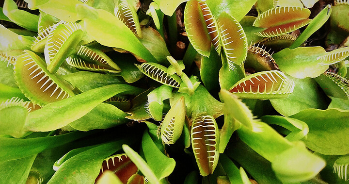 Venus's - Flytraps y Bladderworts. Quizás la más notable de las plantas carnívoras es el grupo que tiene mecanismos de trampa. Las hojas de la conocida trampa para moscas de Venus (Dionaea) se parecen un poco a conchas abiertas. Cada hoja está compuesta por dos mitades semicirculares o lóbulos. Los bordes exteriores de los lóbulos están bordeados con cerdas rígidas. En el lado interno de cada lóbulo hay tres cerdas extremadamente sensibles. Los insectos son atraídos hacia las hojas por el néctar secretado cerca de los bordes de los lóbulos. Cuando un insecto roza los pelos del gatillo, la trampa se cierra y el borde de las cerdas exteriores se entrelaza como dedos de manos juntas. En unos días, el insecto capturado se digiere y la trampa se vuelve a abrir. La trampa, sin embargo, puede alimentarse solo dos o tres veces como máximo antes de que se vuelva negra y se arrugue.