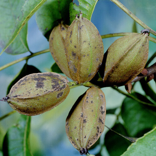 If you’re looking to start a new orchard or plant a tree in your garden, the soundest long-term disease management strategy is to select a variety among resistant pecan cultivars like Choctaw, Gormley, Graking, Mohawk, etc.