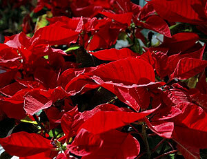The bracts will start to turn color in about four weeks, and continue if you carefully keep up the process. Poinsettias need a humid environment during this time, but be careful not to spray the foliage directly, as you may invite leaf spot, not a desired feature on such a showy leaf! In about eight weeks, the bracts should all be red, if you’ve followed the above guidelines. They’ll stay this way for several weeks, at least until after Christmas.