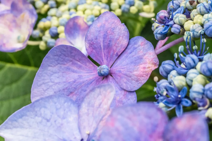 After the plant has flowered, cut off the longer flowering shoots to a lower bud, which will help your lacecap hydrangeas to continue to flower all summer long.