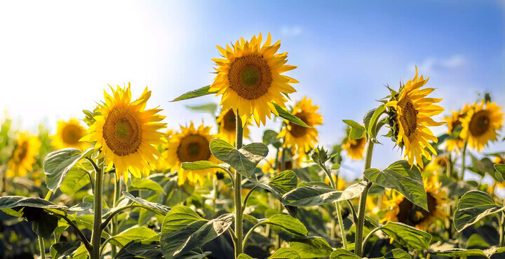 Mexican sunflowers and common sunflowers (Helianthus annuus) are both tall, sun-loving annual flowers that tolerate dry and poor soils. Common sunflowers usually have larger blooms, sometimes in excess of 12 inches in diameter, and many varieties also have edible seeds. Grow the two complimentary sunflower plants at the back of the border for a visual and pollinator feast.