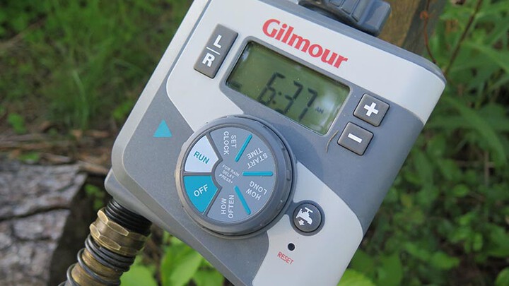 Naturally, rain will revive a brown lawn. However, if rainfall is insufficient watering the lawn deeply once a week will help your lawn to spring back to green. With Gilmour’s Pattern Master Circular sprinkler, you can customize the spray area so you water only the lawn and not the sidewalk. Set up a timer on your spigot, so the sprinkler will come on for 15-20 minutes per watering session. The best time to water is early in the morning between 6 a.m. and 10 a.m., when it’s usually less windy and when temperatures are low.