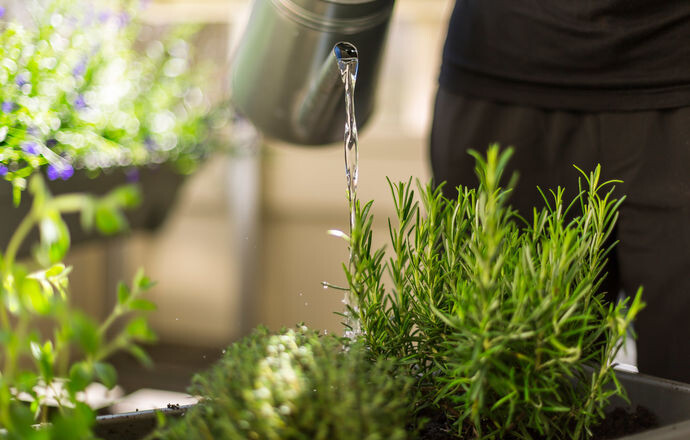Die erfrischenden Kräuter Pfefferminze und Zitronenmelisse sind der perfekte Begleiter für jede Balkonparty. Die frisch abgezupften Blättchen passen wunderbar in eine selbst gemachte Limonade oder einen Cocktail. Auch als essbare Deko für Nachspeisen lassen sie sich verwenden. Pfefferminze und Zitronenmelisse fühlen sich an einem sonnigen bis halbschattigen, geschützten Plätzchen am wohlsten.