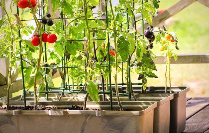 Tomaten sind fast schon ein Muss für jeden Balkongärtner, denn sie lieben einen vollsonnigen Platz, geschützt vor Regen und Wind. Tomatenpflanzen brauchen allerdings eine Stütze. Sie können die Pflanzen beispielsweise an Bambusstäbe anbinden oder einen Blumenobelisken zur Tomatenstütze umfunktionieren.