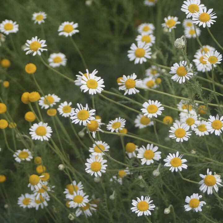 The fruity scent of chamomile (also called German chamomile) smells so much like apples, Greeks call it kamaimelon or "ground apple." The Spanish name manzanilla also means "little apple." Besides apple, the complex fragrance carries a hint of pineapple and bitter butterscotch that makes it smell good enough to eat -- like hot oatmeal covered with maple syrup, topped with butterscotch chips, and very lightly sprinkled with marjoram and rose petals. If you have ever enjoyed chamomile tea, you know the aroma very well. Chamomile is an antidepressant that aromatherapists recommend for emotional and physical oversensitivity. Studies show that it helps with anxiety, stress, and insomnia.