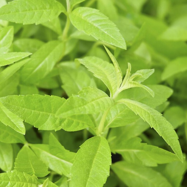 This herb has glossy leaves and small white flowers that bloom from mid- to late summer. It survives only mild winters because it’s considered a tropical plant. The strong lemon scent is tasty in iced tea, or use it for potpourri.