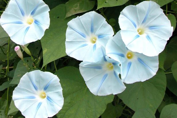·Morning glory (Ipomoea). Morning glories, a daytime-blooming, less-fragrant version of moonflowers, come in a rainbow of colors; 'Heavenly Blue' may be the truest blue available in any flower. Each bloom lasts only a day. These vigorous twiners can climb to 10 feet.