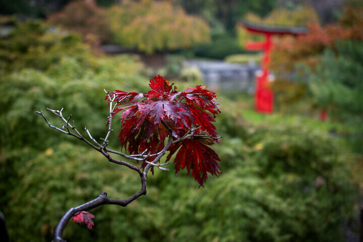 Hanami, the Japanese tradition of viewing the cherry blossoms, has become a well-known and much-loved tradition for the thousands of visitors who flock to the Garden each spring. Momijigari, or autumn leaf viewing, is less famous but well worth embracing too. Each fall, Japanese nature lovers venture into gardens, parks, and mountains to admire the gorgeous leaf colors (koyo) of Japanese maples (momiji) which display nearly unrivaled shades of orange, red, yellow and purple. The beauty of these deciduous trees has been expressed in poems and songs throughout Japanese history.