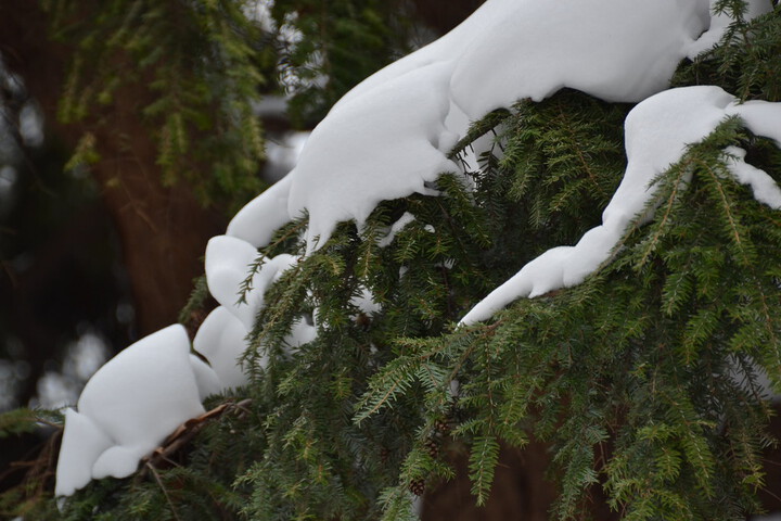 Many trees and other plants are well adapted to snowy conditions. BBG arborist Chris Roddick points out that under persistent snow cover, trees can grow new roots using stored energy reserves. And some trees have ways to avoid bearing heavy snow loads. The branches of conifers like the Nordmann fir (Abies nordmanniana), for example, catch snow. “Then, as more snow falls, the new snow will spill off like it's sliding down a ski slope,” says Roddick.
