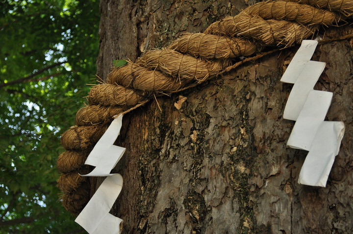 Sacred trees are often a theme in supernatural Shinto or Buddhist folk tales. Spirits, or kami, are said to inhabit old or beautiful trees, called kodama. There are hundreds of these trees in Japan, and to denote their sacredness, they are encircled with large twisted ropes called shimenawa. It is said that misfortune will come to anyone who cuts down or otherwise mistreats one of these trees.