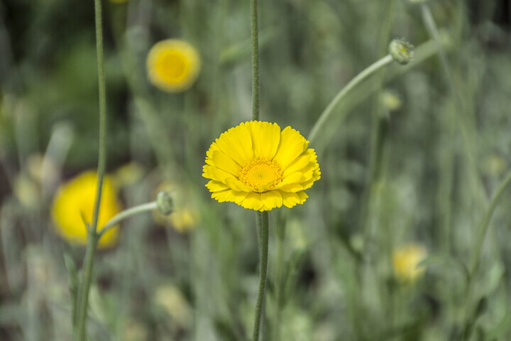 Desert marigold (Baileya multiradiata), moss rose (Portulaca grandiflora ‘Happy Trails White’) and blue-eyed daisy (Arctotis grandis), on the other hand, need full sun but thrive on leaner, well-drained soils. The plants in this section don’t want a lot of water, and that’s just fine with me. My main concern is how some of them will react to our humid summers.