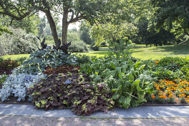This summer, the Annual Border showcases its own various "microclimates," so for this design, the border dictated the plants. Whether the conditions from one end of the border to the other were full sun or partial shade, dry or moist, I tried to choose just the right plant. Each section offers a stylistic counterpoint to the others, inspired by the climate—from tropical to subtropical to temperate—that best represents it.