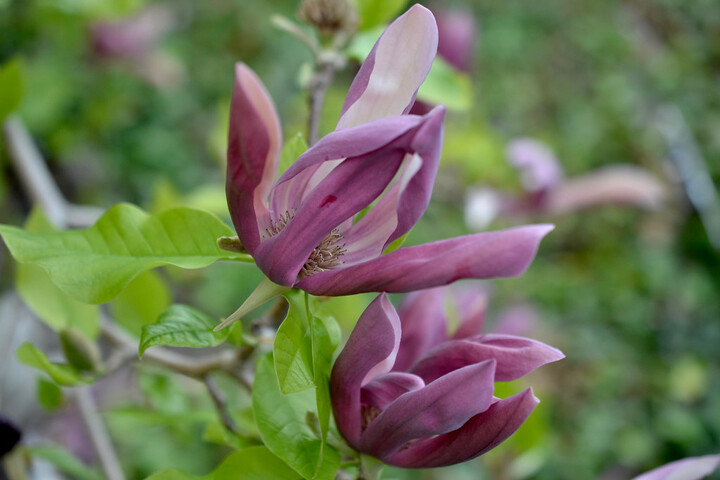 This small tree is considered the first successful cross ever achieved between an American species—the cucumber tree (Magnolia acuminata)—and an Asian species—the mulan (M. liliiflora). Its name honors its breeder, Dr. Evamaria Sperber, who helped start BBG’s breeding program and whose influence on magnolia breeding cannot be overestimated. ‘Evamaria’ was the first of the brooklynensis hybrids, which brought an increased hardiness and expanded color palette previously unseen in magnolias. Its flowers are an unusual purplish color with varying tinges of orange, yellow, and green. Its hardiness results from using a North American parent—our native magnolias bloom much later than Asian ones.